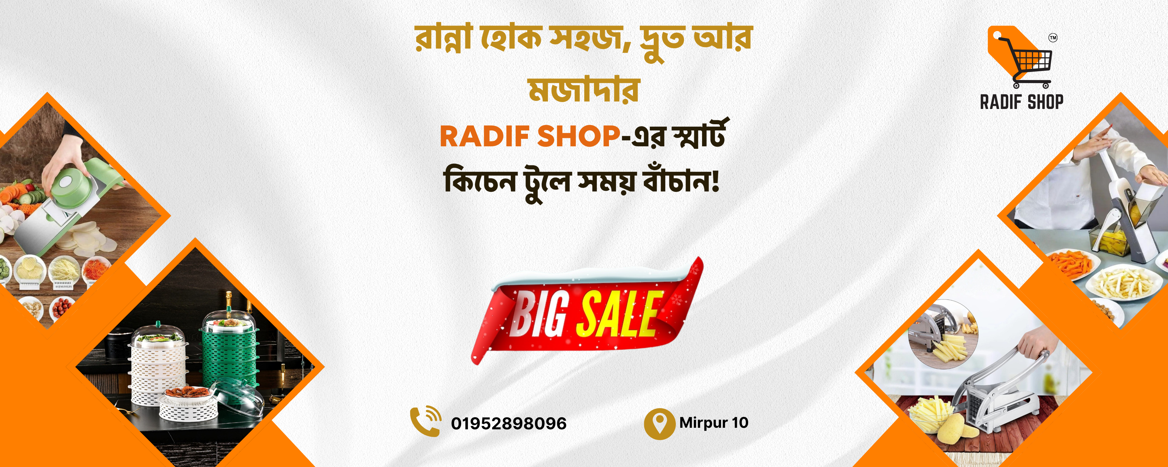 RADIF SHOP একটি অনলাইন ভিত্তিক ই-কমার্স বিজনেস প্লাটফর্ম , এখানে সব ধরনের ফ্যাশন এবং গ্যাজেট আইটেম সবচাইতে কম দামে পাবেন। আপনি আমাদের পণ্যের সেবা বাংলাদেশের যে কোনো প্রান্ত থেকে কুরিয়ার এর মাধ্যমে নিতে পারবেন। । সরাসরি দেখে কিনতে আমাদের অফিসে চলে আসুন যোগাযোগঃ 01952898096